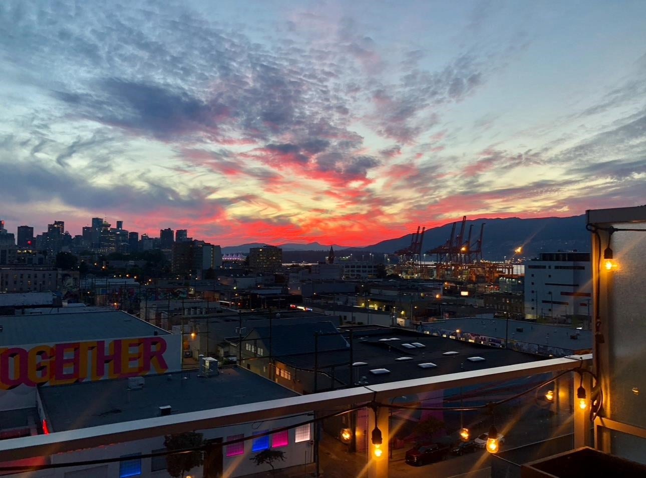 One of the few AirBnb allowed strata buildings! Seize the opportunity to host the FIFA World Cup! HUGE PRIVATE 557 sq ft TERRACE. This Corner suite boasts a huge SW patio that offers stunning views of the city skyline, sunset, lights, mountains + water! This outdoor space is ideal for hosting gatherings but also a private oasis to soak in the sunset–truly an urban sanctuary. Inside, this 2 bed, 1 bath is thoughtfully laid out on the SW corner, optimizing natural light, large flex space, separated bedrooms for privacy. Strathcona Village is a 7yo, well run, concrete building w/ warranty. Steps from Strathcona Beer Company, cafes, parks, schools, 5 min to Commercial + Gastown. Vibrant yet upcoming area! This huge patio is that RARE opportunity - reach out to view! Empty and ready to move in!