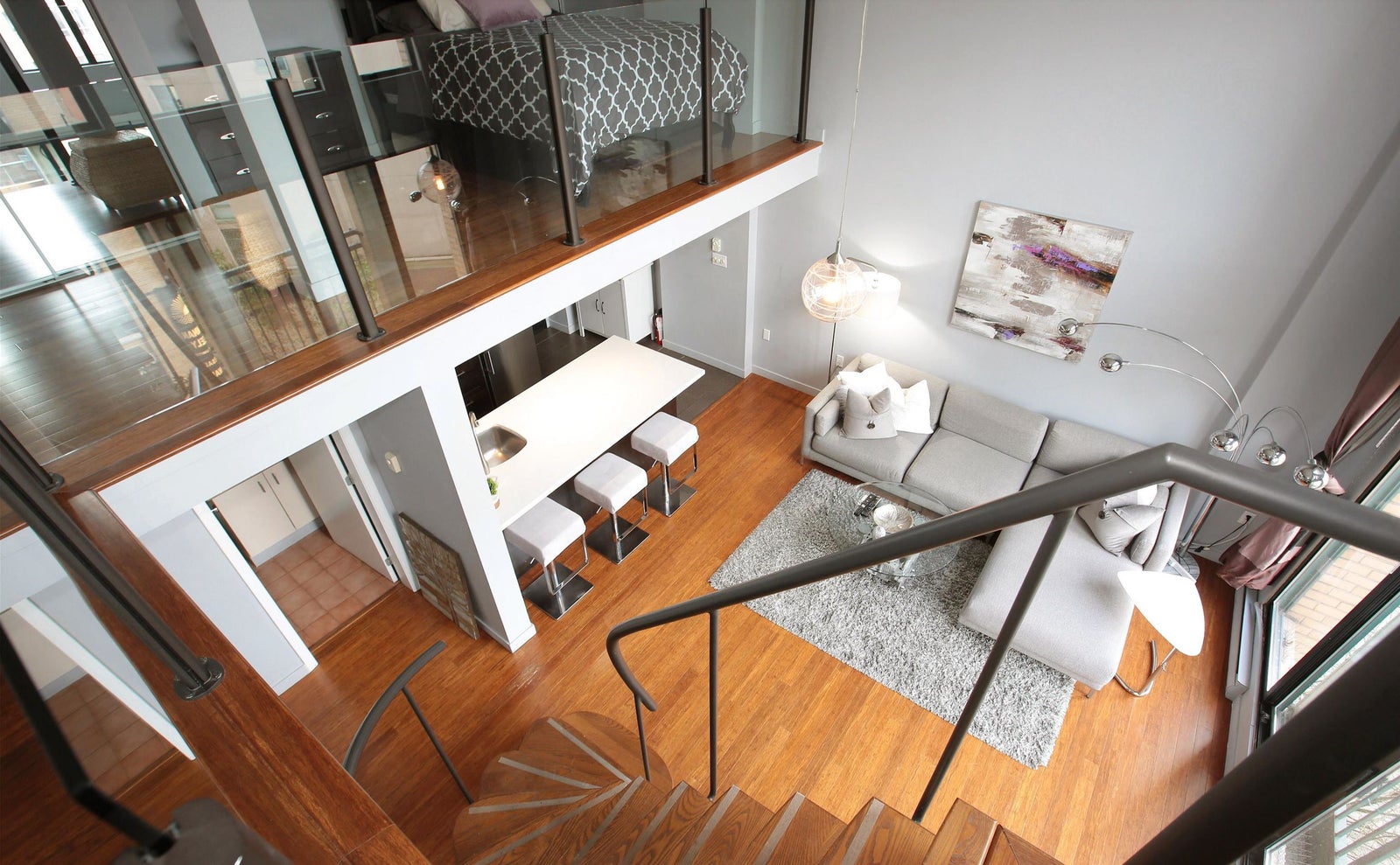 A charming loft in the heart of Gastown. This gorgeous loft offers soaring 16' ceilings, tons of natural light from its floor to ceiling windows, 2 flex spaces great for storage, bamboo flooring, in suite laundry, full bathroom, updated kitchen and Juliet balcony. ALL FURNITURE CAN BE INCLUDED. Comes with 1 secured parking and plenty of additional visitor stalls. Two pets and rentals are welcome. Open house Sun Mar 8th 2.30pm to 3.30pm