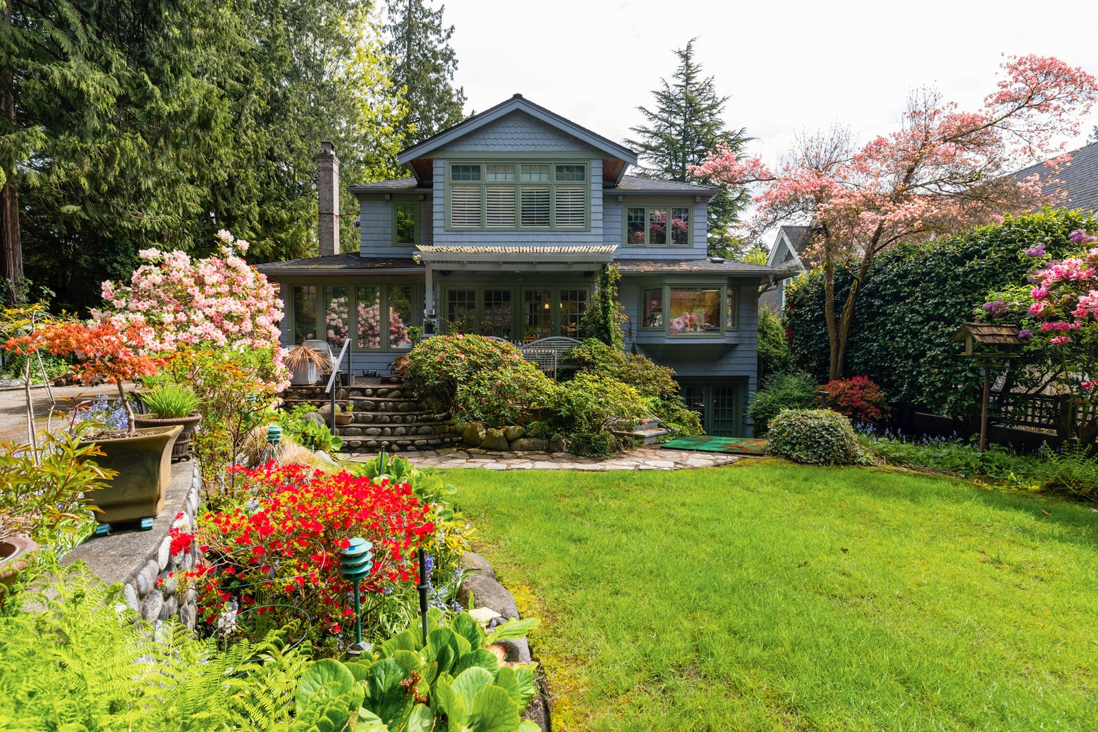 SOLD. Outstanding, traditional, 3 level custom home designed by architect Bryce Ferguson. Great care was taken to blend the home with the outside environment. A truly wonderful floor plan that flows seamlessly to the magnificent garden & multiple patio areas. The property, just under 10,000 sf, exudes the ultimate in privacy and is situated in a great cul-de-sac location adjacent to a forested park. The garden is a masterpiece, reminiscent oft he finest available in an English country manor. Full suit downstairs for Mortgage helper. There is side lane access for ample parking. A lot of thought and detail went into the finishing & design. Your personal re-decorating touches will complete this spectacular Ambleside residence.