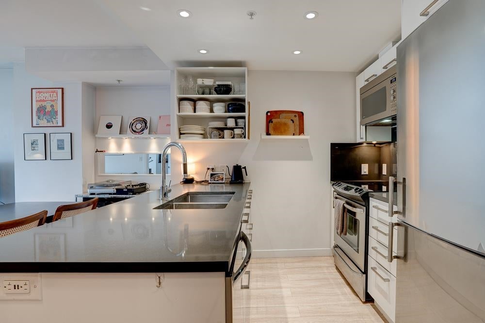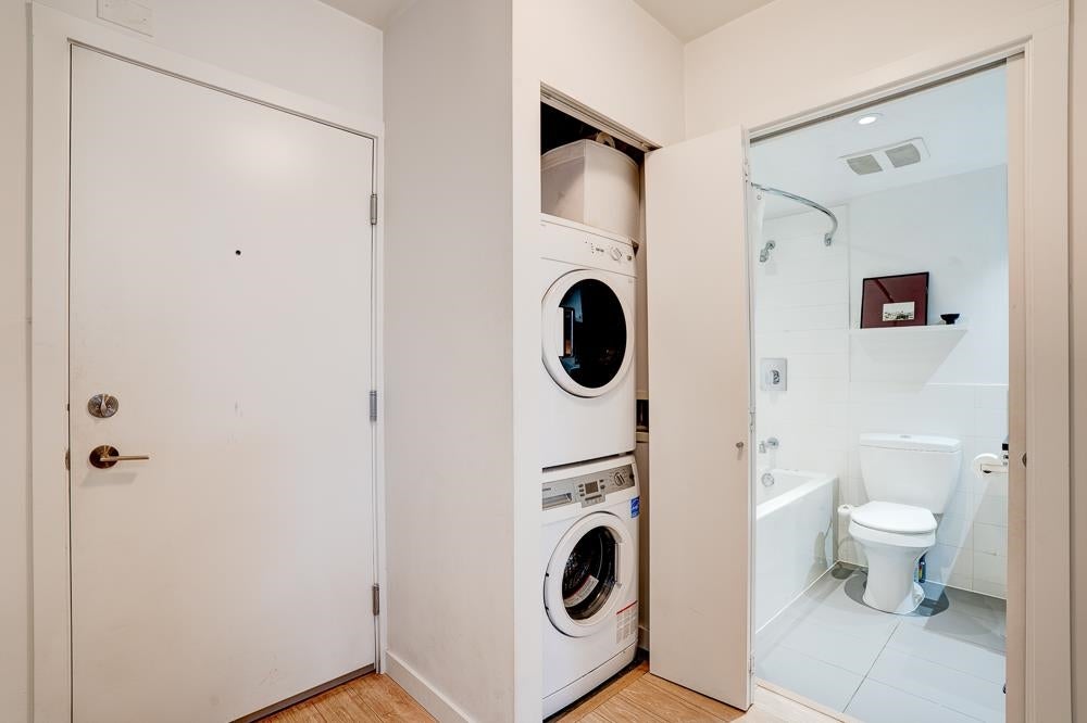 Welcome to STRATHCONA VILLAGE, where contemporary architecture meets effortless city living. Built in 2018, this Northeast facing corner unit features an open layout with breathtaking views of the North Shore Mountains and Vancouver Harbour from every room! The oversized patio creates a seamless indoor/outdoor living space perfect for entertaining. Enjoy exceptional amenities like 2 fully equipped gyms, a party room, meeting rooms, and beautifully landscaped rooftop terraces with gardens, BBQ's & play areas. Perfectly positioned just minutes from Downtown, Chinatown, and Commercial Drive, this home offers the perfect mix of comfort, style, and connectivity—ideal for first-time buyers or investors. Short-term rentals allowed!