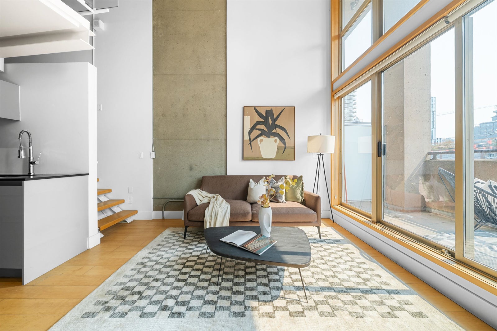 Experience iconic LIVE/WORK living at WSIX, an Arthur Erickson–designed concrete and copper landmark in Vancouver’s vibrant Westside. Steps from Granville Island, Kitsilano, South Granville; this residence offers a lifestyle second to none, complete with Michelin-star dining and dog-friendly community. Soaring 16’ ceilings and south-facing windows fill the space with light, opening to a 100 sqft balcony. Industrial-chic design in the kitchen features AEG and Fisher & Paykel appliances. A floating staircase leads to a loft bedroom retreat complete with walk-in closet and laundry. Marble floors and a deep soaker tub define the spa-like bath. Flexible main-level space suits studio or office—an architectural statement of modern West Coast living. Open House - Sat & Sun, March 14/15, 2-4.