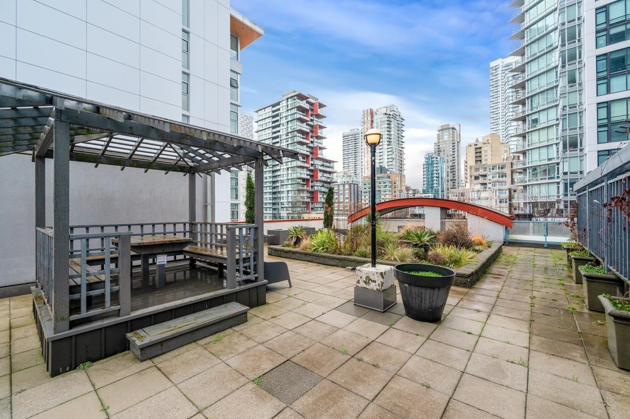 With amazing False Creek water & North Shore mountain view, this elevated home offers all you need. This studio can be easily converted into a full one bedroom unit with a bright solarium. SE facing and loft style ceiling bring abundance of warm natural lighting. Renovation includes: new floor, paint, dishwasher, hood fan, and laundry machine. Unit also comes w/ 1 over-sized storage locker. Plenty long-term parking stalls for rent in the building. Living at the iconic Space building gives you privileged access to its amenities: fitness room, garden terrace, roof deck, BBQ gazebo, wood workshop, bike storage, visitor's parking and private lounge. This home is centrally located within walking distance to everything downtown Vancouver has to offer.Open: Feb 20: 5-7pm; Feb 21: 11am-1pm.