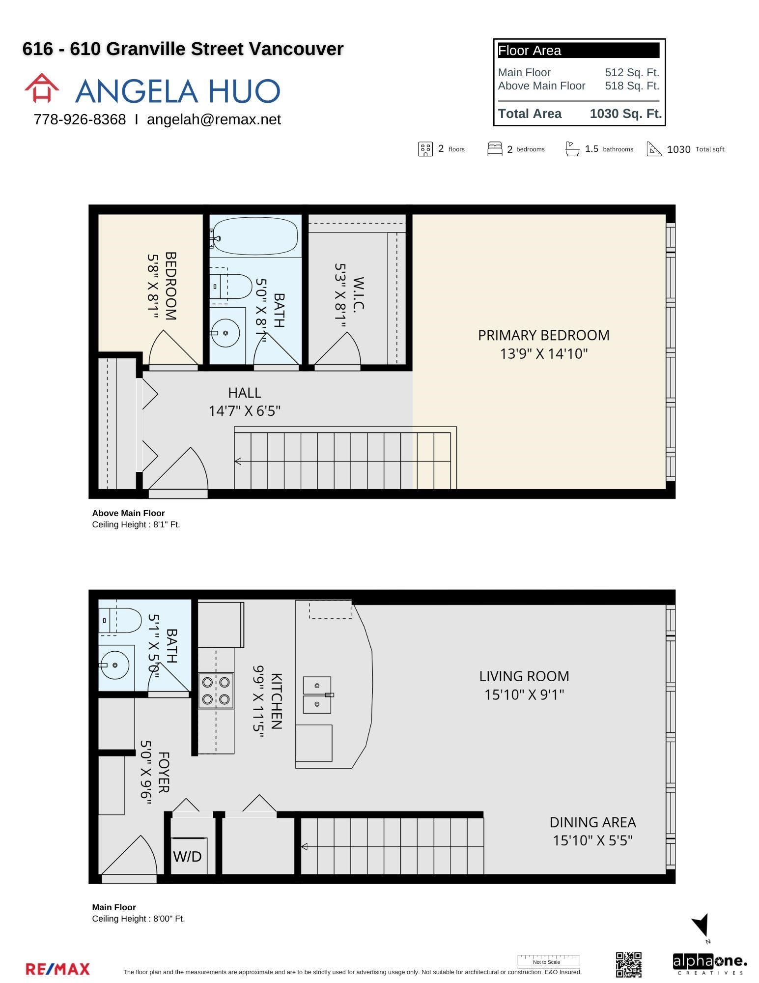 A rarely available Two Storey Loft Style Unit at The Hudson by Wall Financial Corp. Located in Central Downtown Vancouver. The main level has an open concept offering a powder room. The upper level features a spacious bedroom that can fit a king size bed, more dressers and a walk-in closet. Additional Den on the top level allows extra storage or an ideal home office. The Hudson building is live/work zoned, and amenities include 24/7 concierge services, dog park, additional outdoor spaces, and 6 elevators. Direct building access to the SkyTrain and Fitness World gym. 1 parking included.