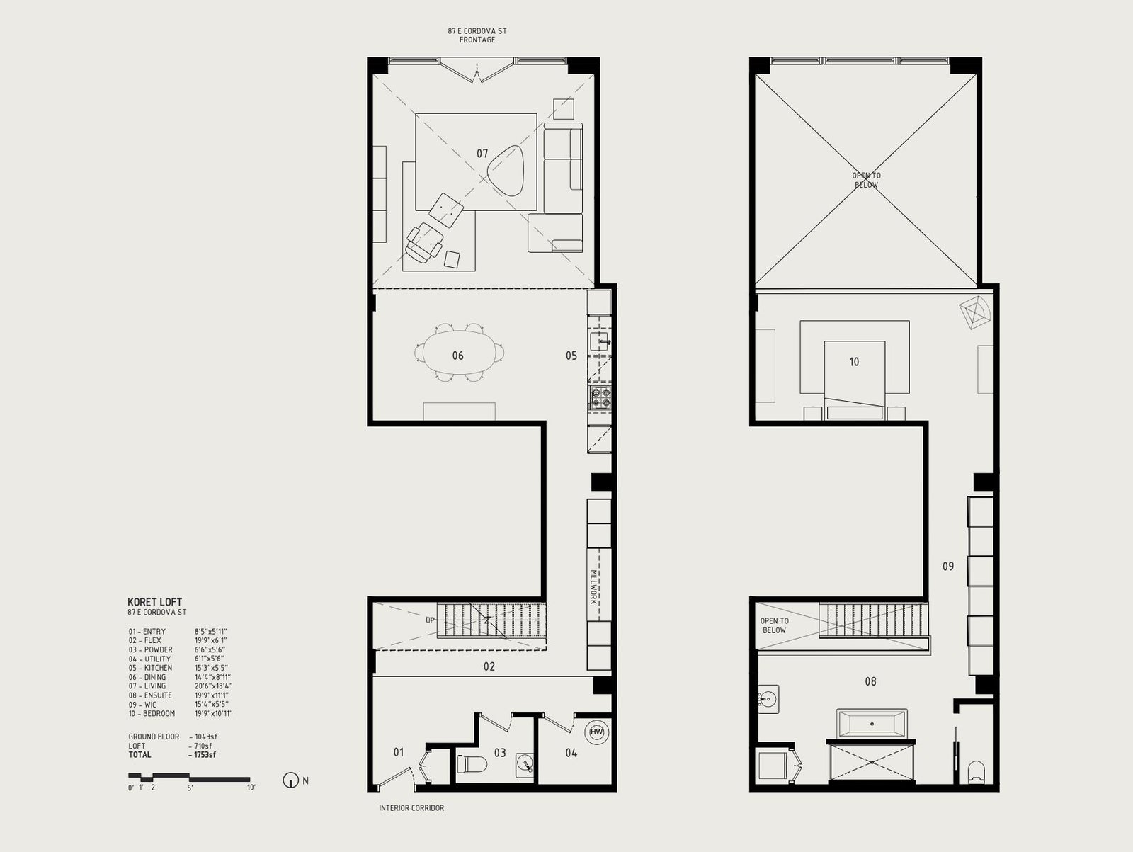 The Artist Loft – a century old warehouse where old-growth timber, masonry, and concrete richly compose an expansive 1753sf at ground level – among the largest in Koret Lofts. 2 storey south-facing storefront windows frame a dynamic live/work space, complete with original Alda Pereira kitchen/millwork and Duravit ensuite. Security and privacy are offered by custom Architectural metalwork throughout, with warm feature lighting by Herman Miller, Louis Poulsen and Danese Milano. A truly unique floorplan balances openness with privacy over two levels – at a generous scale that is rarely seen on the market. Functionality is enhanced by two entrances, ample storage, secure underground parking, short-term rental approval and commercial opportunity. The Koret is Gastown’s premier loft building.