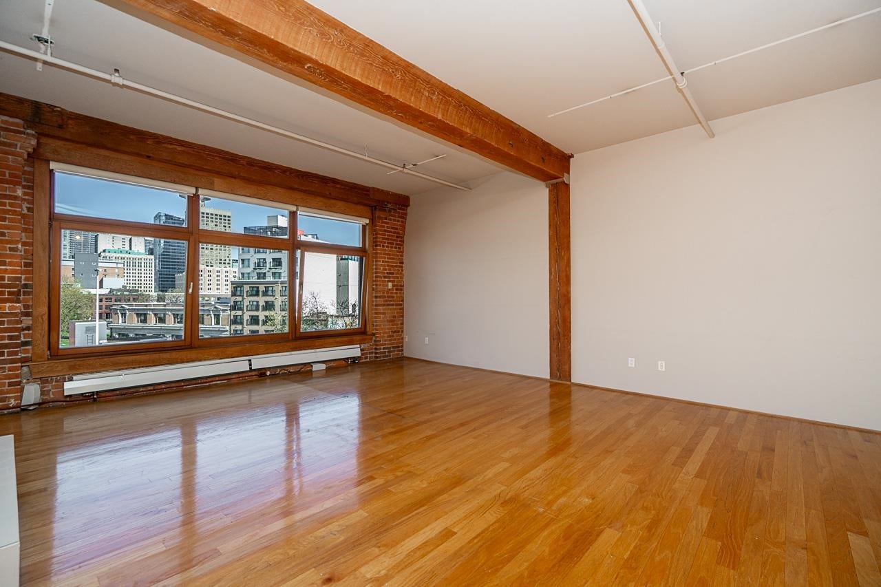 Unit 703 at 518 Studios! This heritage loft conversion studio has over 800 SF. This studio & 1 bath is well appointed with hardwood floors & exposed brick walls. Kitchen showcases solid wood cabinetry with concrete counter tops and stainless appliances. High ceilings, exposed wood beams, vast city views and this an ideal city home. Steps to Jam café and niche restaurants like Chambar + top coffee shops. 5 mins to the False Creek seawall and 10 mins from sporting and theatre venues. Gastown and CBD a 5 min walk. Skytrain 1 min / Heat and hot water included in Strata fees.